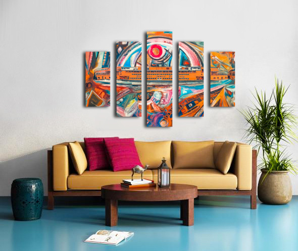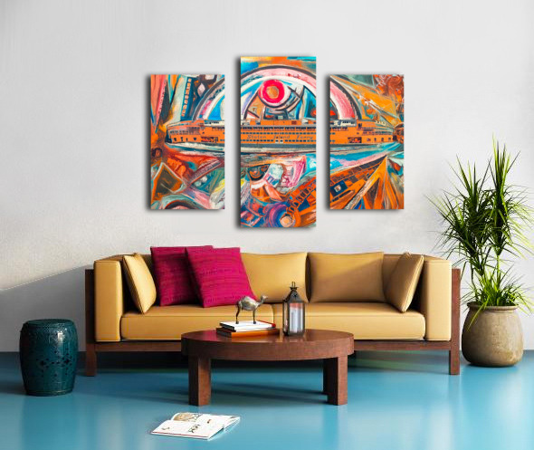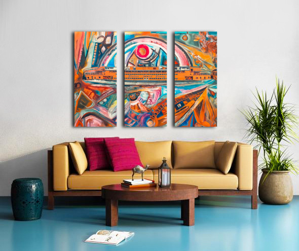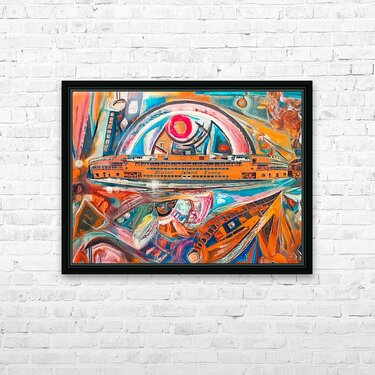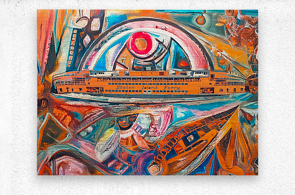 The Staten Island Ferry sails through a kaleidoscope of memory and motion. Fragmented architecture and swirling color reflect the emotional turbulence of city life, while the orange vessel becomes a symbol of quiet resilience—carrying dreams, histories, and healing across the harbor.