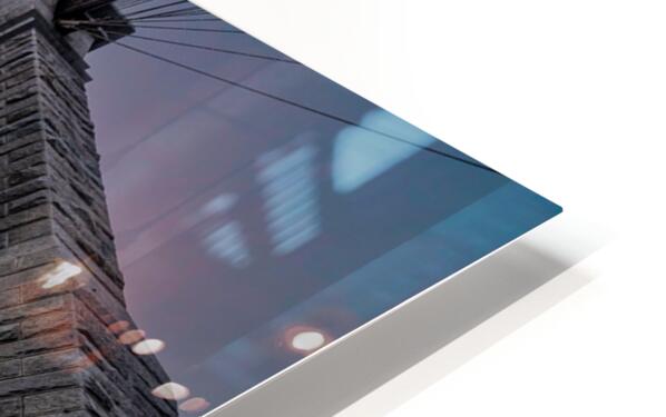 This captivating photograph captures the majestic architecture of the Brooklyn Bridge, viewed from below. The image focuses on the towering stone arch...[+]