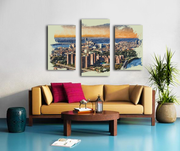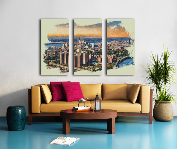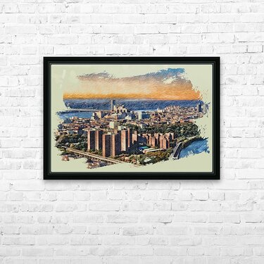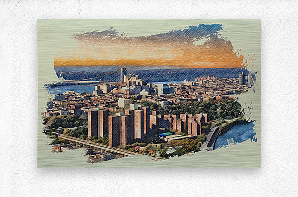 Once the hallowed ground of champions, the Polo Grounds now rise as a monument to Harlem’s resilience where legacy lives not in marble, but in memory and motion. Captured from a helicopter’s gaze, this aerial composition reveals the architectural rhythm of the housing towers, framed in the golden hush of dusk. The painterly finish softens the city’s geometry, casting the scene in a dreamlike glow that evokes both prestige and poignancy. Here, Babe Ruth once swung beneath the skyline, and generations later, families built lives in the shadow of history. This image is not just a view—it’s a reverent homage to transformation, a luxury of perspective that turns concrete into canvas and community into crown.