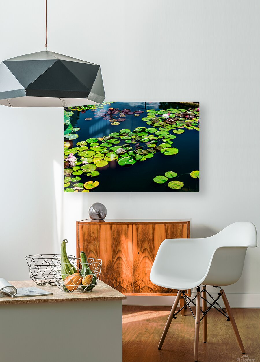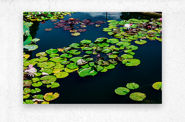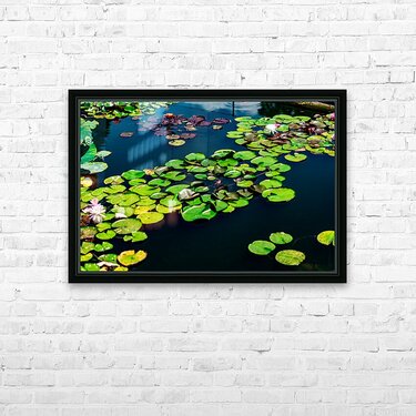 A tranquil mosaic of lily pads drifts across a sapphire pond, each leaf a quiet witness to the rhythm of nature. Shades of emerald and plum mingle wit...[+]