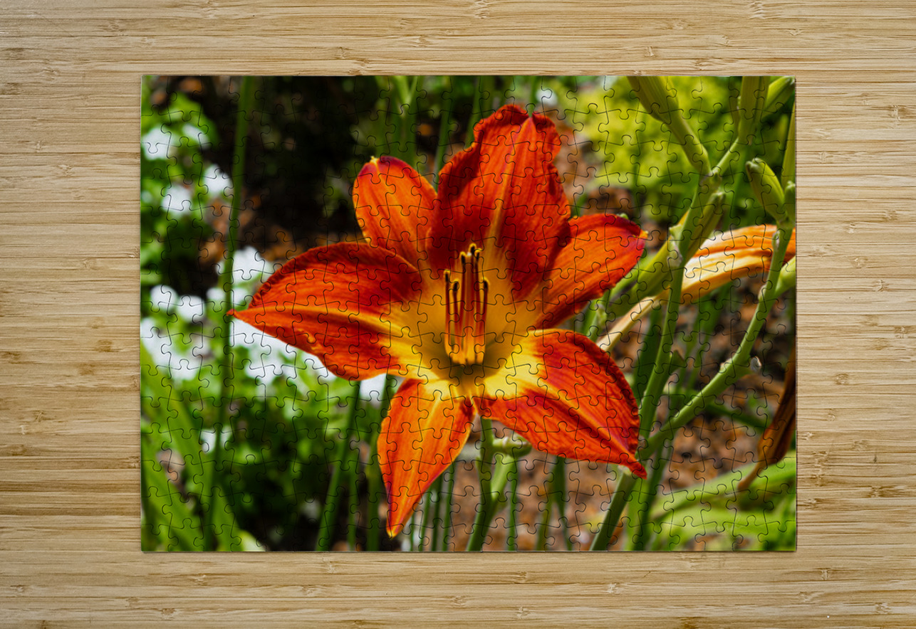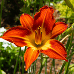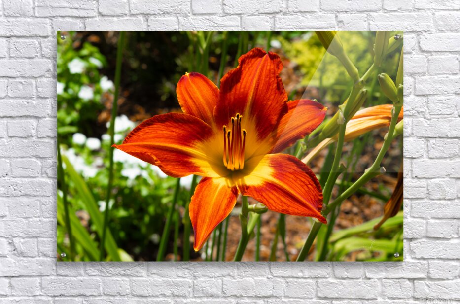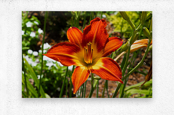 A daylily ignites the frame in hues of flame, orange petals streaked with crimson, cradling a golden heart. Its sixfold symmetry radiates strength, while the dark stamens rise like sparks from a quiet fire. Ember Bloom is a portrait of passion held in stillness, a floral flare that speaks of renewal, intensity, and the beauty of fleeting brilliance. Surrounded by green promise, it stands as a symbol of bold emergence, nature’s way of saying, “I am here, and I burn with grace.”