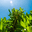 Bathed in golden sunlight, a lush green plant stretches skyward, its broad leaves glowing with vitality against a clear blue canvas. Captured from bel...[+]