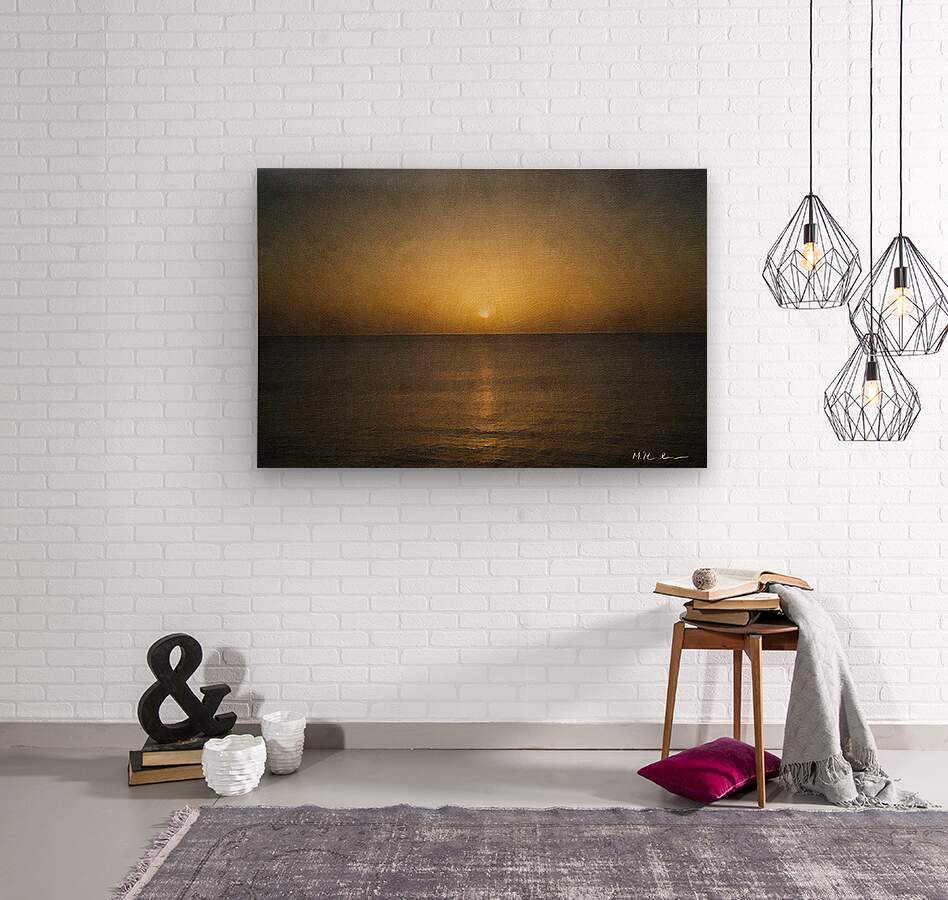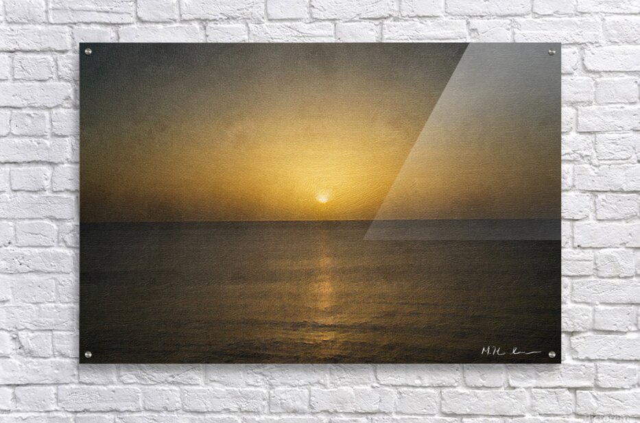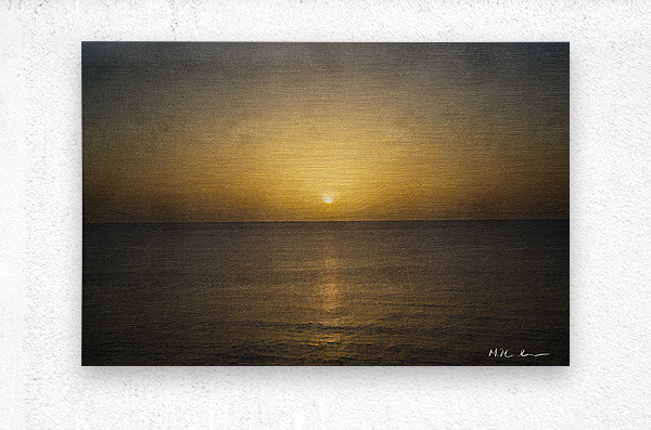 A golden hush settles over the sea as the sun kisses the horizon, casting molten light across tranquil waters. The sky, a gentle gradient from amber t...[+]