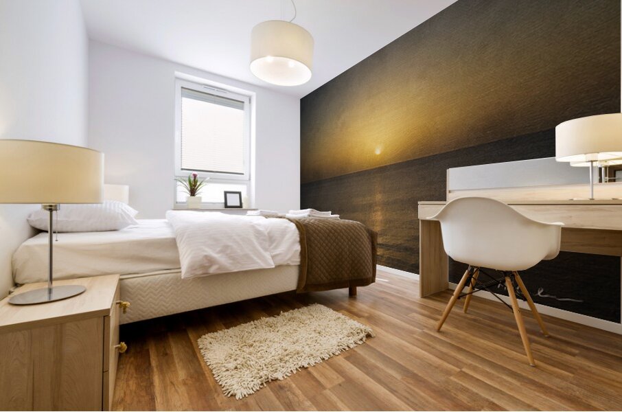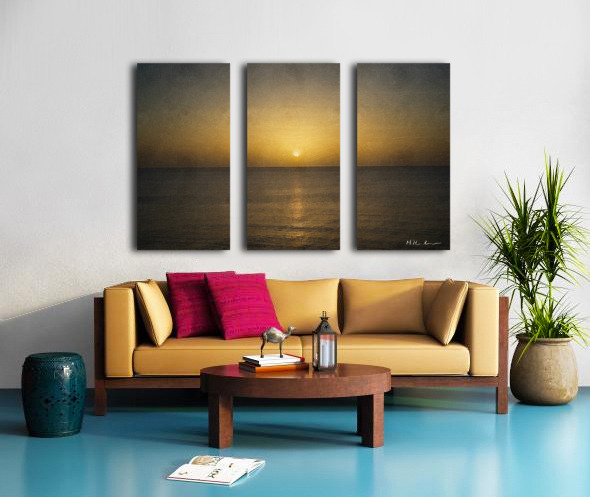 A golden hush settles over the sea as the sun kisses the horizon, casting molten light across tranquil waters. The sky, a gentle gradient from amber to indigo, cradles the moment between day and night. Subtle ripples mirror the fading warmth, inviting quiet reflection. With its painterly texture and meditative stillness, Solace at the Horizon evokes the healing power of nature’s transitions, where endings feel like beginnings, and silence speaks in color.