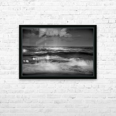 This black and white photograph captures the mesmerizing beauty of the ocean waves under a dramatic sky. The interplay of light and shadow on the wate...[+]