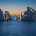 This captivating photograph captures the iconic rock formations of El Arco de Cabo San Lucas, located at the southern tip of the Baja California Penin...[+]