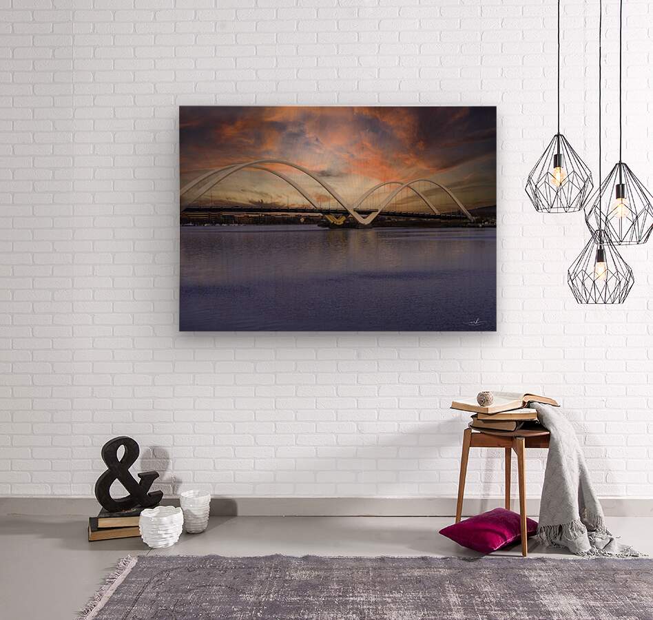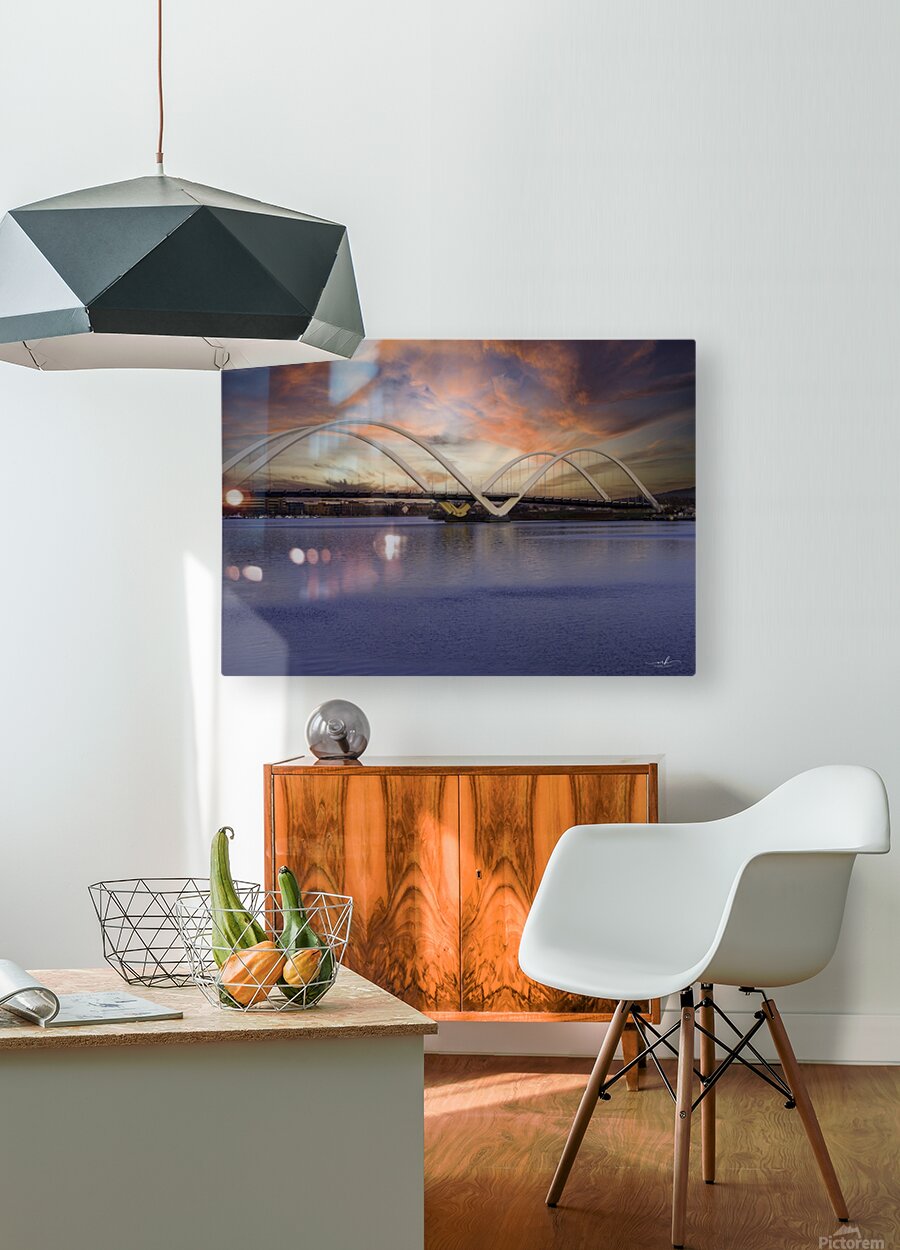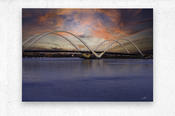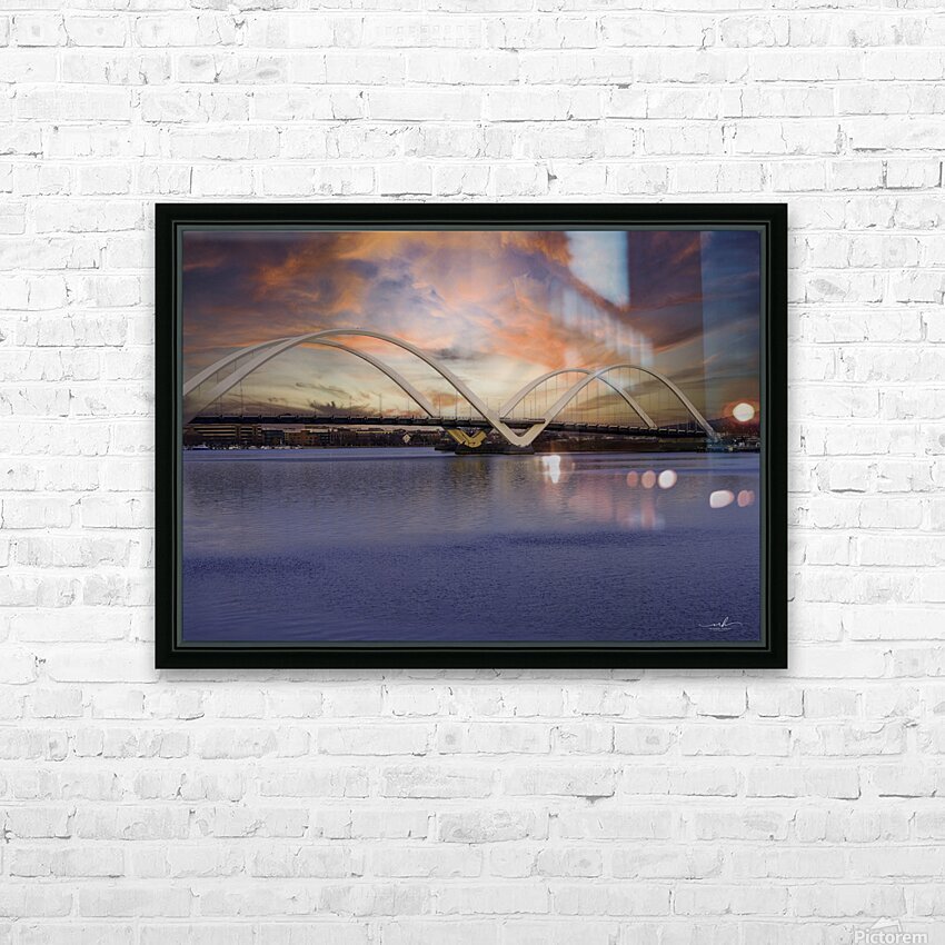Bathed in the warm glow of a Washington, D.C. sunset, the Frederick Douglass Memorial Bridge rises with graceful white arches over the Anacostia River. Its modern design echoes the strength and resilience of its namesake, abolitionist and statesman Frederick Douglass. The tranquil water mirrors the fiery hues of twilight—orange, pink, and violet, while the bridge connects not just cityscapes, but generations. A symbol of progress and remembrance, this image captures the soul of a city honoring its past while moving boldly into the future.