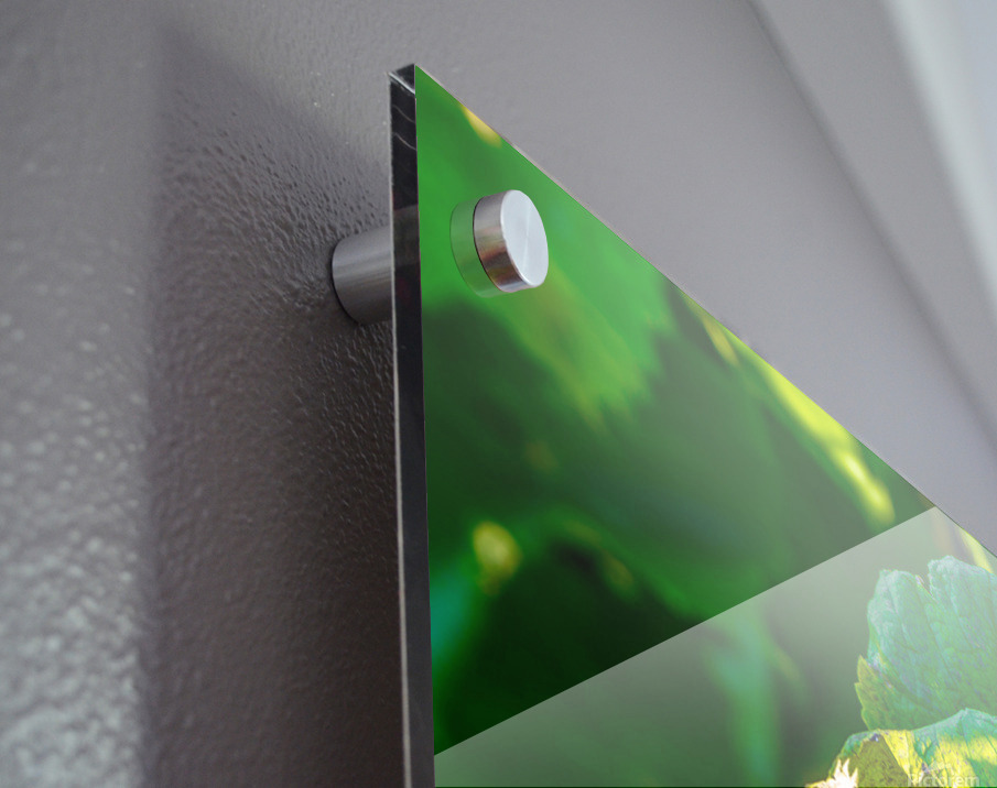 Impression sur acrylique avec entretoises ( cylindres métalliques )